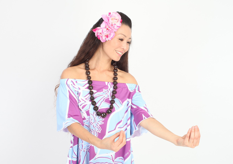 現在はハワイを拠点に活躍するクムフラ(フラの師)カピオラニ・ハオと夫であるクムフラ ワイラニに師事し、その教えを大切に守りながら、恵比寿と東十条を拠点にフラとタヒチアンのレッスンを行っています。